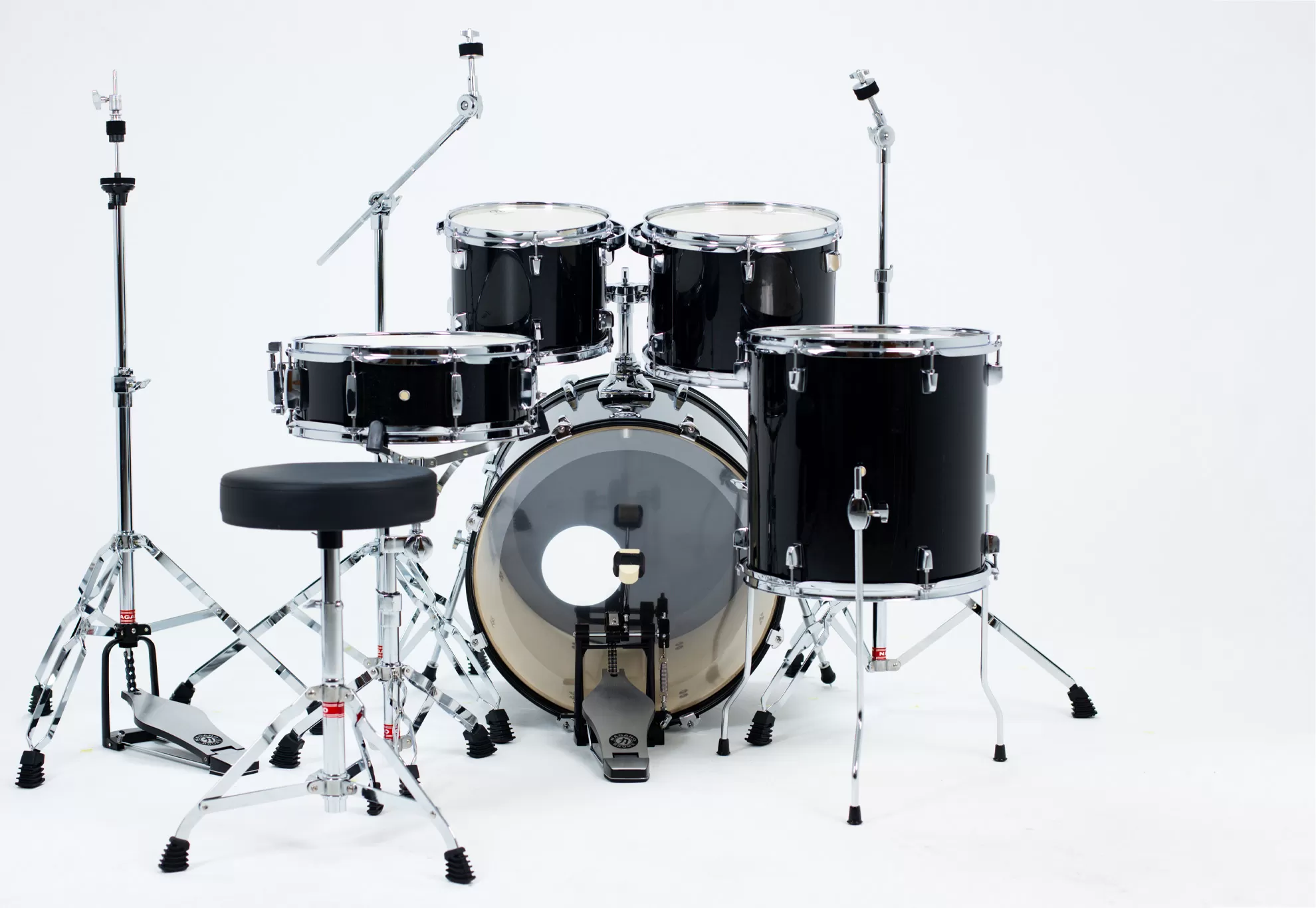 Os kits vêm equipados com sistemas de suspensão tipo RIMS, peles "NAGANO DOUBLE PLY" nos toms e surdos e “Super coated” nas caixas. Os bumbos tem peles com anel abafador na batedeira e na resposta.
