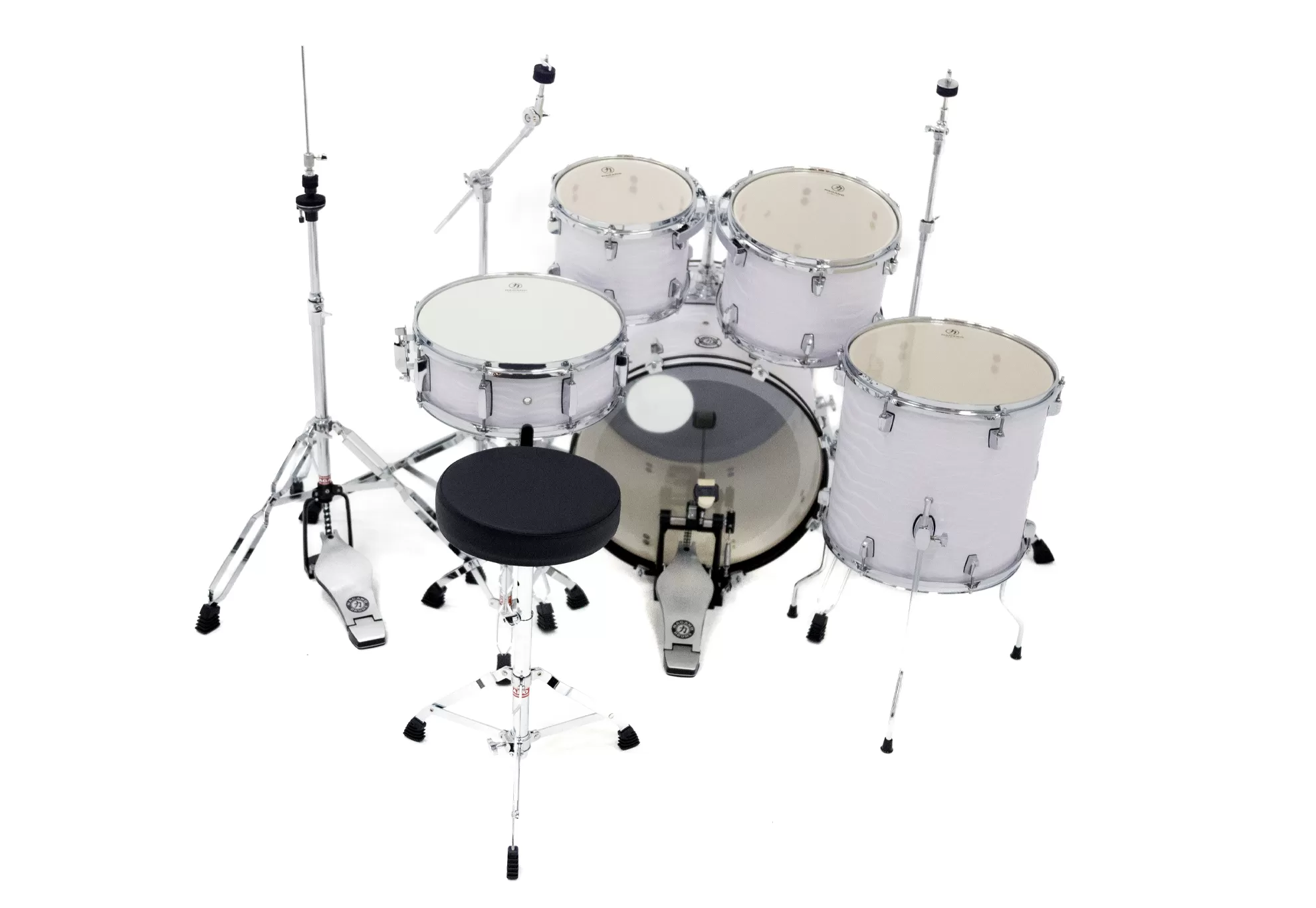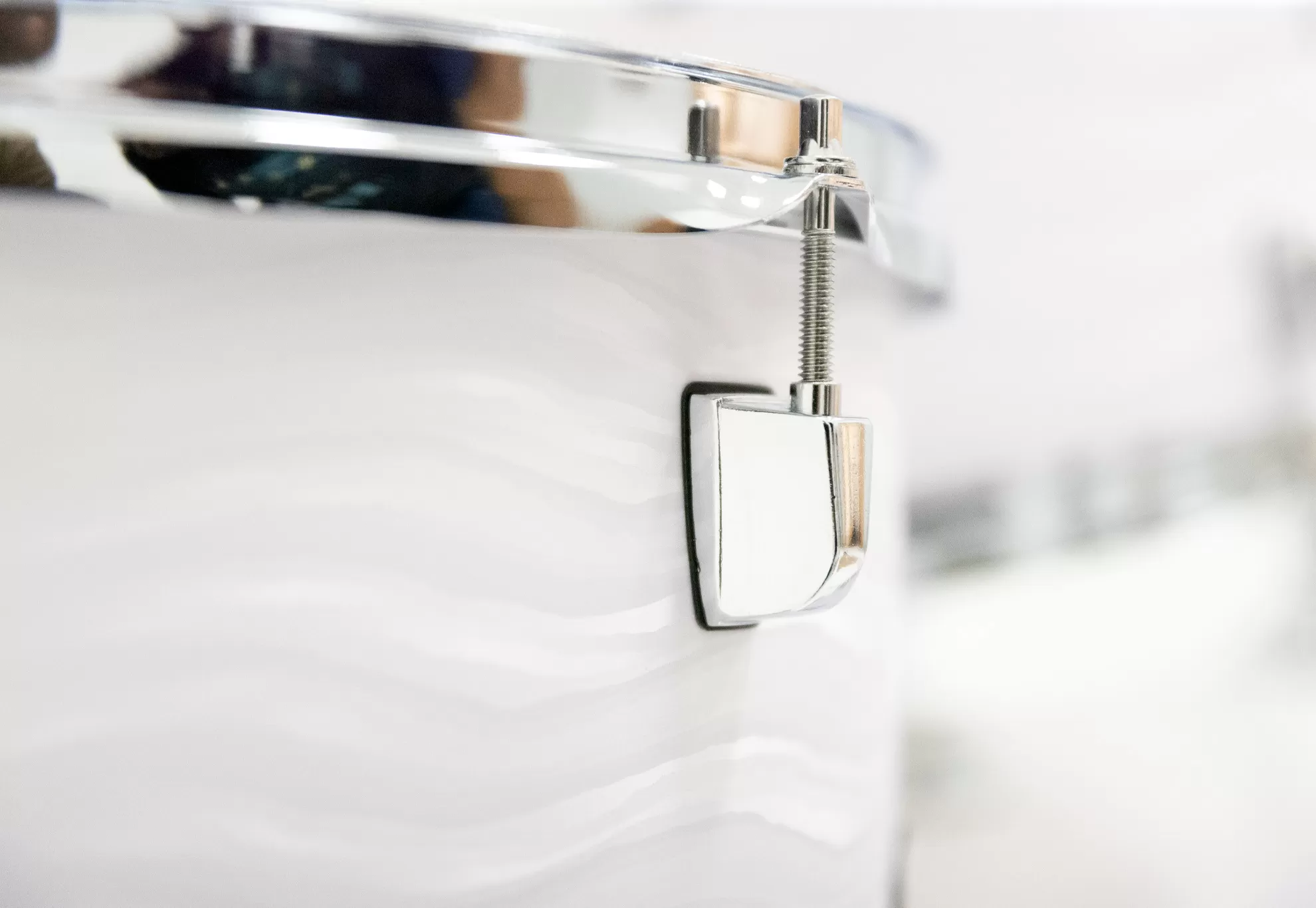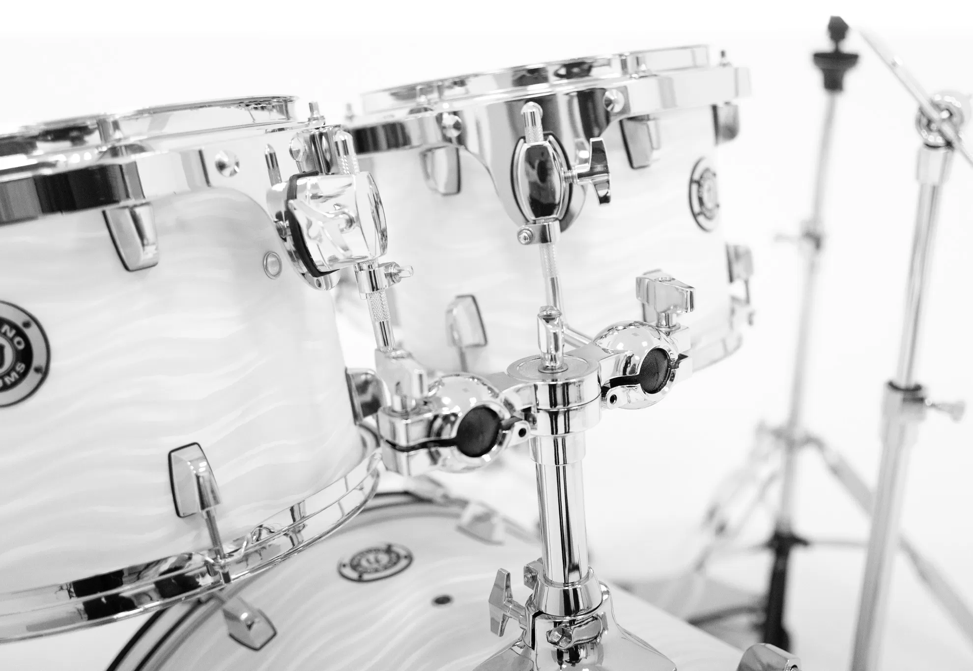 Os tambores de “Hard Poplar” com bordas “vintage”, se comportam bem em qualquer estilo musical, garantindo um som profundo e aveludado mesmo com peles monofilme ou com controladores de harmônicos.