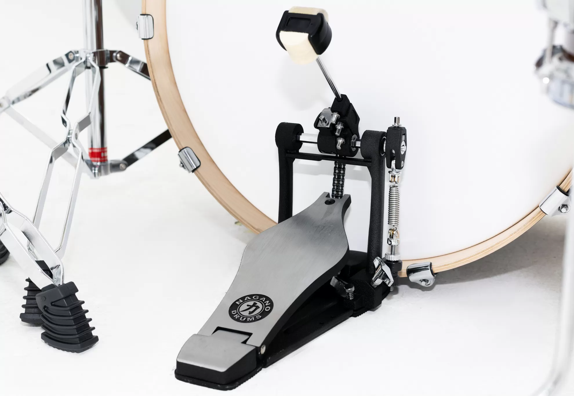 As ferragens são de alto nível. O pedal de bumbo com a sapata exclusiva da Nagano e múltiplos ajustes, faz parte do kit completo de novas ferragens da linha Work (linha 500) que garante performance e durabilidade. A Classic Stage também vem com duas estantes de prato girafas, a requisitada estante de caixa Work e a máquina de chimbal da Nagano com a sapata de pedal do mesmo design exclusivo Nagano, ajuste de tensão, três correntes de ação, e muito mais.